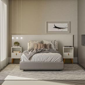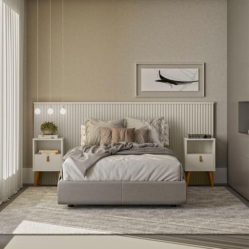 A Cabeceira com Mesas de Cabeceira trás conforto e beleza a seu quarto com seu lindo design ripado.