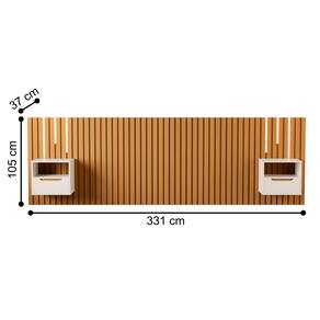 Feita em MDP/MDF 24mm. Acompanha duas mesas de cabeceiras suspensas que possui gavetas com corrediças telecópicas e 1 Kit de LED. Comporta cama de 186x198 cm.