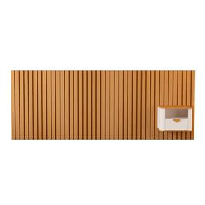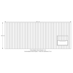 Cabeceira Ripada na cor marrom com estrutura ripada de 24cm, acompanha uma mesa de cabeceira Buriti, gaveta com puxador em madeira maciça e corrediça telescópica.