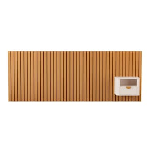 Cabeceira Ripada na cor marrom com estrutura ripada de 24cm, acompanha uma mesa de cabeceira Buriti, gaveta com puxador em madeira maciça e corrediça telescópica.
