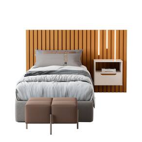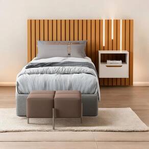 Cabeceira Ripado Cama de Solteiro Maracá Nature Com Mesa de Cabeceira Jatobá  Com Led OffWhite - Rede Móveis