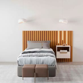 Com a cabeceira Ripada da Rede Móveis adicione estilo e durabilidade à sua decoração com nossa estrutura ripada de 24mm, feita com os melhores materiais em MDF e MDP para garantir resistência e um visual moderno. Cabeceira Suspensa: Transforme seu quarto com elegância e praticidade com nossa cabeceira suspensa. Oferecendo um estilo moderno e funcional, maximiza o espaço disponível enquanto adiciona um toque de sofisticação ao ambiente.