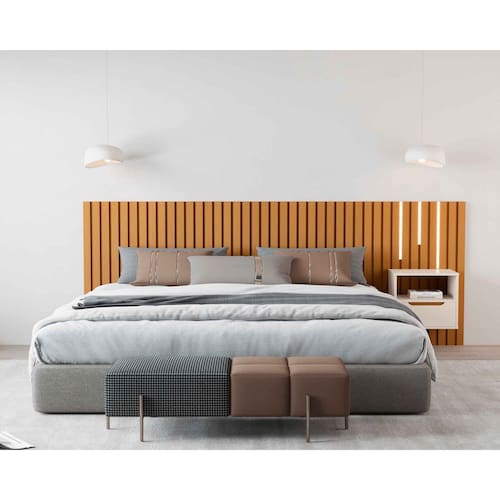 Com a cabeceira Ripada da Rede Móveis adicione estilo e durabilidade à sua decoração com nossa estrutura ripada de 24mm, feita com os melhores materiais em MDF e MDP para garantir resistência e um visual moderno. Cabeceira Suspensa: Transforme seu quarto com elegância e praticidade com nossa cabeceira suspensa. Oferecendo um estilo moderno e funcional, maximiza o espaço disponível enquanto adiciona um toque de sofisticação ao ambiente.