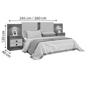 A Cabeceira Rubi Casal Queen com 2 Mesas de Cabeceira D Doro tem um design bonito para decorar seu quarto. Possui 2 mesas de cabeceira, 4 gavetas com corrediças telescópicas, 2 prateleiras com luminária e nichos para objetos.