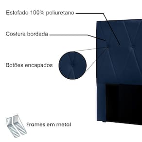Cabeceira Solteiro 0,90m Ávila Suede Azul Marinho - Pallazio