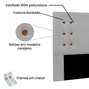 Apresentamos o modelo de cabeceira Genova que veio para completar o seu quarto. Visual moderno e sofisticado com o tamanho perfeito para você, produzida com materiais de primeira linha, com botões de madeira cerejeira e costuras bordadas matelasse fazem dela uma obra de arte no seu quarto.