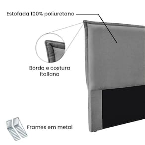 Cabeceira Solteiro 0,90m Veneza Linho Rústico - Pallazio Cor Cinza Escuro