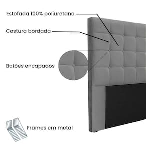 Apresentamos o modelo de cabeceira Verona que veio para completar o seu quarto. Visual moderno e sofisticado com o tamanho perfeito para você, produzida com materiais de ótima qualidade, botões forrados no tecido com costura bordada que fazem dela uma obra de arte no seu quarto.