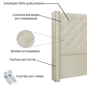 A cabeceira Vicenza nos traz o estilo neoclássico, o deslumbre imperial do conforto e beleza. Visual moderno e sofisticado com o tamanho perfeito para o seu quarto. produzida com materiais de primeira linha, botões forrados no tecido com costura bordada que fazem dela uma obra de arte no seu quarto. Informações Técnicas: Tecido: Corano Estrutura: Madeira Industrializada Densidade da Espuma: D-23 Detalhes: Tachas em Metal Fumê Costura: Bordada Botões: Forrado no tecido Montagem: Acompanha manual de montagem, kit frame e parafusos para cama box Medidas: Altura total: 1,38 m Largura total: 1,14 m Profundidade total: 0,18 m Peso: 14 kg Informações Importantes: Confira as dimensões do produto no momento da compra e certifique-se de que passará normalmente por escadas, elevadores, portas e corredores. Os produtos vão embalados e enviados com total segurança. As cores dos produtos podem sofrer alterações dependendo do seu monitor. Por se tratar de estofado as medidas podem ter uma pequena variação em até 3 cm. Não nos responsabilizamos no ato da entrega por montagens, desmontagens, instalações de produtos. Não nos responsabilizamos no ato da entrega por subir escadas, elevadores, nem utilização de guinchos ou equipamentos similares para acesso a pisos superiores em apartamentos. undefined