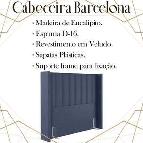 Cabeceira Solteiro 88 cm Barcell Veludo, ideal para inovar o seu quarto com toque luxuoso e ao mesmo tempo refinado. Estrutura em madeira de eucalipto, que oferece maior durabilidade ao produto. Composta por revestimento em tecido veludo, conta com espuma D-16 de altíssima qualidade, sapatas plásticas e acompanha frames para facilitar a fixação no box, é ideal para colchão Solteiro de 88 cm. Unindo elementos do design contemporâneo, que proporcionam uma ambientação moderna e com acabamentos sofisticados. Este móvel chegará na sua casa separado em 01 volume.
