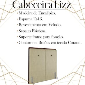 Cabeceira Solteiro 88 cm Lizz Veludo, é a escolha certa para você que busca conforto e modernidade, tornando o seu quarto muito mais versátil e sofisticado. Estrutura em madeira de eucalipto, que oferece maior durabilidade ao produto. Composta por revestimento em tecido veludo, contorno e botões em tecido corano, conta com espuma D-16 de altíssima qualidade, sapatas plásticas e acompanha frames para facilitar a fixação no box, é ideal para colchão Solteiro de 88 cm. Com design que proporciona elegância, charme e luxuosidade ao seu quarto. Este móvel chegará na sua casa separado em 01 volume.