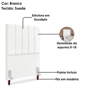 Cabeceira Solteiro Carla, moderna e aconchegante trazendo elegância para seu quarto! Estrutura em Madeira de Eucalipto (reflorestada), estofada em espuma (densidade D-18) e revestida em tecido Suede (clássico aveludado com toque suave). Incluso Frame (metal resistente com reforço lateral e acabamento em pintura epóxi) para fixação em camas Box e pés em madeira maciça (12 cm). Pode haver variação no design do frame dependendo do lote de peças. A função do acessório e usabilidade permanece a mesma. Este produto será entregue em 1 volume.