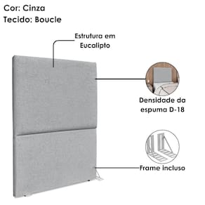 Cabeceira Solteiro Luna, moderna e aconchegante trazendo elegância para seu quarto! Estrutura em Madeira de Eucalipto (reflorestada), estofada em espuma (densidade D-18) e revestida em tecido Bouclé (macio e texturizado). Incluso Frame (metal resistente com reforço lateral e acabamento em pintura epóxi) para fixação em camas Box e sapatas plásticas. Este produto será entregue em 1 volume.