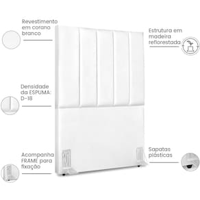 Transforme o seu quarto com a Cabeceira Solteiro Allia. Projetada para oferecer um toque moderno, possui revestimento em Corano, que proporciona um visual sofisticado e que facilita a limpeza. Com 90cm de largura, esta cabeceira é feita com uma estrutura em madeira de eucalipto, garantindo durabilidade e resistência. Sua espuma de densidade D-18 oferece um suporte ideal e maciez. As sapatas plásticas garantem estabilidade e proteção para o seu piso, evitando riscos e danos. Além disso, o produto vem acompanhado de frame de metal, facilitando a instalação e proporcionando maior segurança. Ideal para quem busca funcionalidade e estilo. Este móvel chegará em sua casa separado em 01 volume.