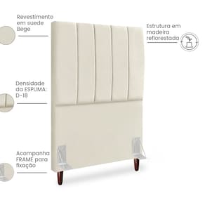 Cabeceira Solteiro 90cm Arlla Suede Bege RM