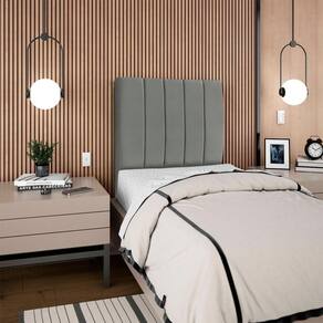 Cabeceira Solteiro 90cm Arlla Suede Cinza Rm Cinza