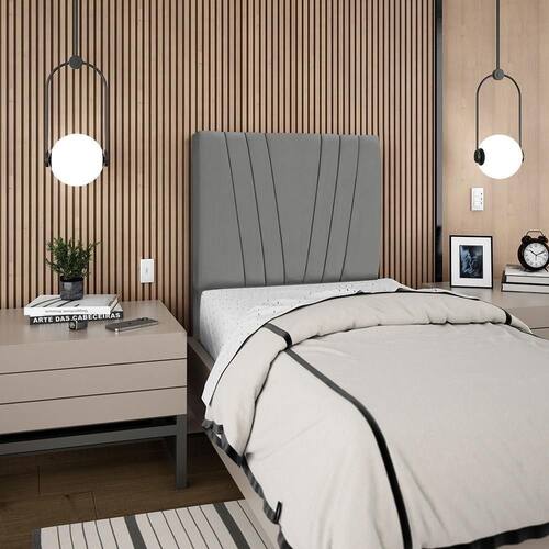 Cabeceira Solteiro 90cm Bell Suede Cinza Rm Cinza