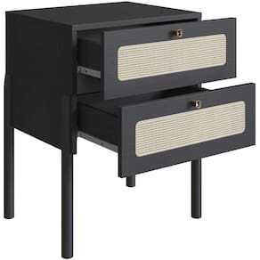 02 gavetas com corrediças metálicas simples e aplique de tela sintética (PVC com poliéster).