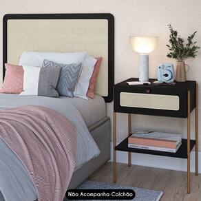 A Cabeceira Solteiro 90cm e Mesa 1 Gaveta Arlo A10 Nero/Dourado, da Mpozenato, destaca-se por sua combinação de conforto e estilo, ideal para complementar o ambiente de descanso.