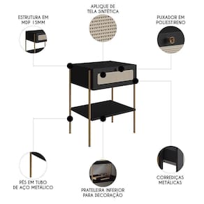 A Cabeceira Solteiro 90cm e Mesa 1 Gaveta Arlo A10 Nero/Dourado, da Mpozenato, destaca-se por sua combinação de conforto e estilo, ideal para complementar o ambiente de descanso.