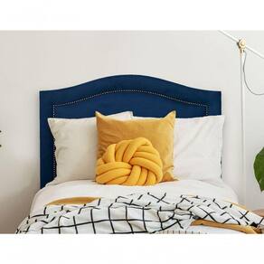 Cabeceira Solteiro Curva Luxo 90x60 Suede Azul - Tachas Fumê