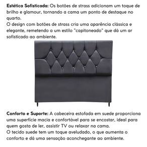 Com botões Strass, dispostos em uma padronagem elegante, trazem um brilho sutil e adicionam um toque de glamour à cabeceira. Cada detalhe foi cuidadosamente trabalhado, fazendo dela o ponto focal do seu quarto.