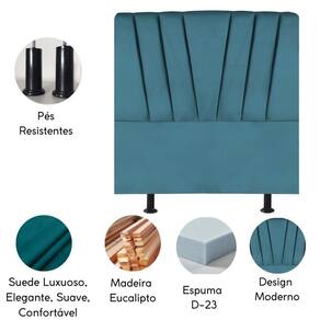 Cabeceira Solteiro Cama Estofada 100 Cm Lile Suede Azul Turquesa