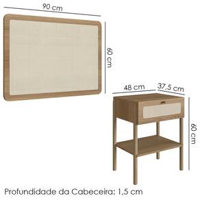 Dimensões Cabaceira 27966: Altura: 60 cm Largura: 90 cm Profundidade: 1,5 cm