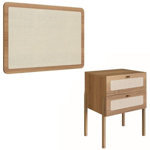 Fabricada em MDP com acabamento BP e detalhes em tela sintética, a Cabeceira Solteiro oferece durabilidade e um toque acolhedor ao quarto. O design retrô sofisticado harmoniza perfeitamente com diversos estilos, enquanto os suportes metálicos garantem uma instalação firme e discreta. Já a Mesa de Cabeceira é ideal para manter o quarto organizado. Com 2 gavetas espaçosas equipadas com corrediças metálicas e puxadores de poliestireno, oferece espaço extra para itens pessoais. Feita em MDP 15 mm e com pés de madeira maciça de eucalipto, a mesa combina resistência e sofisticação no Quarto de Solteiro.