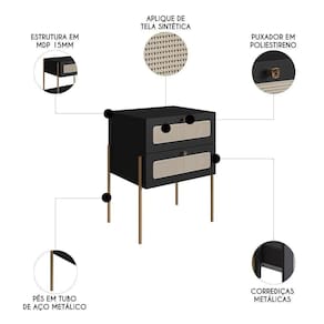 Altura: 60 cm | AssemblyRequired: Sim, sugerimos a contratação do nosso serviço de montagem (para os CEPs em que o serviço está dispon | Color: NeroDourado | ColorFamily: NeroDourado | ColorSimple: NeroDourado | ColorSupplier: NeroDourado | Cor: NeroDourado | Gênero: Unisex | Largura: 90 cm | Manual: Sim | Material: MDP | MaterialFamily: MDP | Model: Arlo | Origem: | OriginCountry: | OriginState: PR | Peso: 12 kg | ProductContents: 1 Cabeceira 1 Mesas de Cabeceira | ProductHeight: 60 | ProductInstructions: Produto para uso em ambiente interno, nao devendo ficar exposto ao sol, calor e umidade excessivos. | ProductLength: | ProductWarranty: 90 dias após o do produto | ProductWeight: 12 | ProductWidth: 90 | Profundidade: 1,5 cm | Requere montagem: Sim | SizeDescription: 60 x 90 x 1,5 cm | SupplierSimpleName: Cabeceira Solteiro 90cm e Mesa 2 Gavetas Arlo A10 NeroDourado - Mpozenato