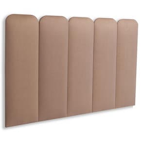 Cabeceira Solteiro Estofada Kit 5 Placas Arredondada - Suede Bege