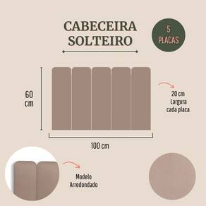 Tamanho Solteiro (5 placas): 100cm (comprimento total) x 60cm (altura) x 3 cm (profundidade).