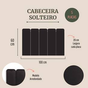 Tamanho Solteiro (5 placas): 100cm (comprimento total) x 60cm (altura) x 3 cm (profundidade).