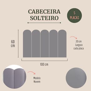 Cabeceira Solteiro Estofada Kit 5 Placas Nuvem - Courino Cinza
