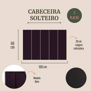 Tamanho Solteiro (5 placas): 100cm (comprimento total) x 60cm (altura) x 3 cm (profundidade).