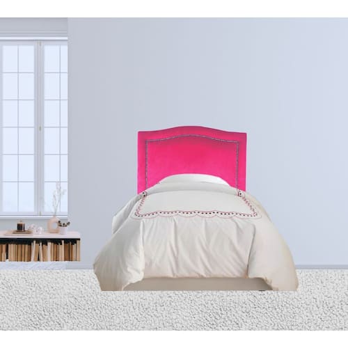 Cabeceira Solteiro Estofada Línea Tachas em Veludo Rosa Pink
