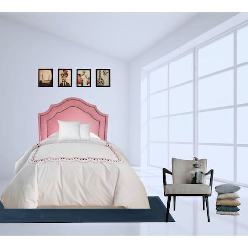Cabeceira Solteiro Luxo Veludo Rosa Dupla Tacha Fumê 65x90