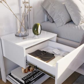 MDP | MDFEssa Cabeceira Solteiro possui design inovador e sofisticado. Acompanha rack lateral que é ideal para organizar seus objetos pessoais.