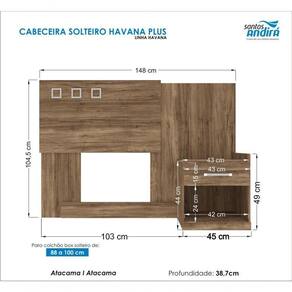 Cabeceira Solteiro Plus Com Mesa De Cabeceira Atacama - Santos Andirá