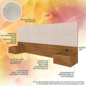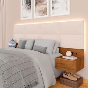 A Cabeceira Estofada Honduras Com Led une sofisticação e modernidade com seu design clean. A iluminação LED embutida criam uma atmosfera acolhedora e funcional, ideal para transformar seu quarto com elegância e praticidade.