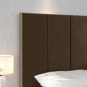 Ela foi confeccionada em suede, um tecido muito versátil que ao mesmo tempo é sofisticado. O estofado da cabeceira é de excelente qualidade, garantindo segurança na hora do sono, impedindo o contato da cabeça com a parede e também serve de apoio para hora de ler seu livro preferido.