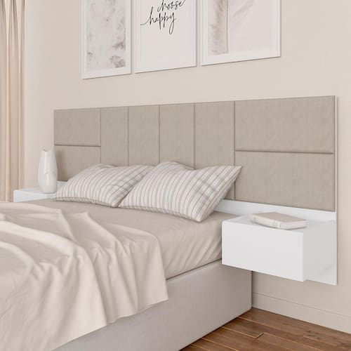 A Cabeceira Malibu suspensa com mesa lateral une praticidade e conforto. O grande destaque é o painel almofadado trazendo modernidade e beleza.Detalhes Técnicos:Medidas da Cabeceira montada: A:90cm | L:220cm | P:36,5cmMateriais de Fabricação:- Chapa MDP 15mm- Revestimento: Pintura UV-Tonalidade: Branco-Tonalidade do tecido : Suede Bege- Corrediça Metálica- Produto suspenso (Fixado na parede com régua)-Medida para cama:138cm- Estruturado com material de altíssima qualidade, evitando fungos e mofo.Conteúdo da Embalagem:- 01 Cabeceira- Plástico protetor- Caixa papelão- Acessório para Montagem: Cavilhas, Parafusos, Sache de cola, Etiqueta, Tapa furo.Observações Importantes:- As imagens ambientadas são meramente ilustrativas e podem apresentar itens que não incorporam o produto;- Todos os nossos produtos são novos, acompanham documento fiscal e possuem garantia de 3 meses, essa garantia cobre somente defeitos de fabricação;- A entrega só será efetuada no endereço do CEP, caso o endereço seja diferente do CEP informado no pedido, a entrega terá cobrança adicional e o comprador arcará com as despesas;- Não realizamos entregas para zonas rurais, via caminhos fluviais e distritos, por isso não aceitamos CEP GERAL da região;- Não é possível realizar o agendamento de entrega do produto, é necessário que acompanhe o rastreio de seu pedido para saber a previsão de entrega;- As entregas somente serão realizadas para um responsável maior de idade (+18);- Enviamos para diversos estados, sendo assim nossas entregas são realizadas por transportadoras parceiras de nossa empresa. Confira as dimensões antes da compra e certifique-se de que o produto passará por elevadores, portas e corredores já que nossa entrega não inclui a subida de lances de escada, transporte por elevador e o lançamento de produtos, em caso de condomínios residenciais a entrega é feita somente até a portaria. Todas as entregas são realizadas em dias e horários comerciais;- Ao receber os seus produtos observe se a embalagem se encontra em perfeitas condições. Se você adquiriu algum móvel, confira atentamente a quantidade de volumes e o aspecto físico das embalagens. Confira também se a cor do móvel está de acordo com o seu pedido;- O prazo de cancelamento por arrependimento é de até 7 dias corridos a contar da data de recebimento;- Os produtos e assistências são enviados DESMONTADOS, MONTAGENS E DESMONTAGENS recomendamos sempre a contratação de um montador profissional e é válido lembrar que o custo desses serviços é por conta do comprador;- Objetos decorativos que aparecem na foto não acompanham o produto;- Evitar a exposição direta à luz solar e à umidade;- Para limpeza, limpar com pano macio e seco, não utilizar qualquer outro tipo de produtos químicos;- As cores do produto podem variar de acordo com o monitor, a iluminação do ambiente ou sua percepção visual;