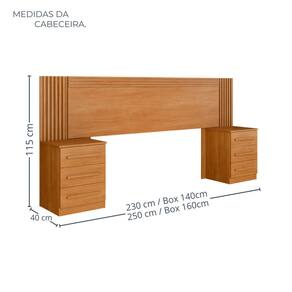 Dimensões: Altura: 115 cm Largura: 230 cm/Box 140 cm - 250 cm/Box 160 cm Profundidade: 40 cm Peso: 53 kg