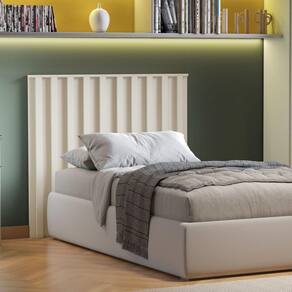 Cabeceira Vitória Solteiro Off White A Cabeceira Vitoria Solteiro - Moveis Europa e a escolha ideal para quem busca elegancia e qualidade no quarto. Com um acabamento em Verniz UV e uma escala de brilho semi-brilho, essa cabeceira adiciona um toque de sofisticacao ao ambiente, destacando-se pelo seu design moderno e refinado com o elegante detalhe ripado de madeira, um elemento bastante contemporaneo na decoracao de ambientes. Ideal para camas de solteiro. A Cabeceira Vitoria transforma seu quarto em um espaco acolhedor e sofisticado. Caracteristicas: Material: 100 MDF Modelo: Solteiro Acabamento: Verniz UV Escala de Brilho: Semi-Brilho Sistema de Montagem: Parafuso, Minifix e Cavilha Espessura da Moldura Superior: 2,5 cm