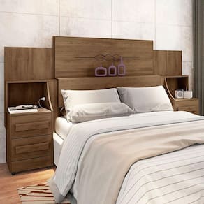 Cabeceira Síria RV Extensível para cama Casal e Quenn Freijó A Cabeceira Síria é Adaptável para box de 1,4m, 1,6m ou 1,93 podendo ser usada para camas de Casal Padrão (colchões de 1,38 de largura), Casal Queen (colchões de 1,58 de largura) e Camas King (colchões de 1,93 de largura). É perfeita para adicionar conforto e elegância ao seu dormitório. Feita para quem busca estilo e sofisticação, possui um design moderno com linhas retas em diferentes níveis. Suas gavetas nas laterais formam pequenos criados para ajudar na organização do ambiente, em sua parte superior conta com espaço para dispor objetos úteis no dia a dia. Seu espaço nas laterais possibilita a colocação de objetos decorativos para deixar tudo ainda mais aconchegante e harmonioso. Medidas Do Produto Comprimento: 37 Cm Altura: 137,5 Cm Largura: 227 / 247 Cm (Pode ser estendida até 247cm) Itens Inclusos 4 Gavetas com puxadores em alumínio e corrediças telescópicas, painés em MDF. Kit completo para montagem, Manual detalhado de instruções para montagem Garantia 3 meses contra defeito de fabricação Instruções de Limpeza Limpar com flanela ou pano macio seco, não utilizar produtos abrasivos, desengordurantes, álcool ou solvente. Não expor o produto diretamente à luz solar e à umidade * Sugerimos a contratação de um montador profissional para a montagem do produto. Não nos responsabilizamos por avarias causadas no ato da montagem. * Não nos responsabilizamos pela montagem e desmontagem do produto no ato da entrega e devolução, assim como os custos gerados nestas situações. A transportadora entregará o produto no andar térreo do endereço de entrega. Não nos responsabilizamos por subir escadas, corredores e elevadores ou transporte por guincho em apartamentos. *Imagens meramente ilustrativas