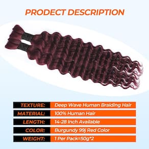 Cabelo humano trançado para tranças Boho 99j Borgonha 35,5 cm 2 feixes 100 g de cabelo humano Boho para trançar cabelo humano encaracolado virgem 12A para tranças Boho sem nós cabelo humano - 99j Borgonha BOHO HUMANO BRAIDING HAIR CURLY MATERIAL: 100% cabelo humano virgem brasileiro de alta qualidade não processado, o cabelo encaracolado para tranças boho cabelo humano é grosso e cheio, liso e sedoso, macio, confortável e saltitante. Cria sem esforço um penteado mais natural. - Cabelo trançado encaracolado para o avanço das tranças boho: o cabelo humano boho trançado pode ser descolorido, tingido, com permanente e modelado, sem cheiro, sem emaranhado e sem queda, depois de ser trançado, o cabelo humano boho pode durar vários meses. - BOHO CABELO HUMANO CURLY PARA DETALHES DA TRANÇA: Feixes de cabelo humano para trança com uma ampla variedade de cores (1b/Borgonha/4-27#/350#/), comprimentos (35.6-71.1 cm), você pode escolher a combinação perfeita para suas preferências e alcançar seu visual desejado. As opções de penteado são maiores, para que em qualquer ocasião pareça muito perfeito para usá-lo. - Cabelo humano a granel para tranças pós-venda: temos uma equipe pós-venda, se você tiver alguma dúvida sobre nosso cabelo humano encaracolado para tranças boho, resolveremos isso para você a tempo. Você pode comprá-lo com confiança. Cabelo humano encaracolado para tranças Boho adequado para todas as ocasiões. - SUGESTÃO: 50 g por pacote, 2 pacotes por pacote, total de 100 g. Mais pessoas optam por pedir 100 g + 100 g para poder fazer um penteado mais bonito; se você tiver algum problema com a instalação e uso, sinta-se à vontade para entrar em contato conosco!