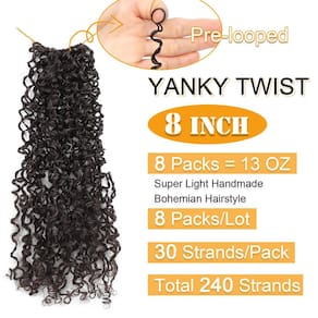 Nosso cabelo de crochê torcido é feito de material de fibra sintética de alta qualidade que é suave no seu couro cabeludo e fácil de manter. O cabelo é macio, sem emaranhados e não solta nada, garantindo uma aparência e sensação naturais. Nosso cabelo trançado sintético Yanky Twist pré-torcido é pré-torcido e vem em um design pré-laço fácil de usar, tornando-o rápido e simples de instalar. É versátil o suficiente para ser utilizado diretamente ou utilizado para criar uma variedade de novos penteados, como cabelo de crochê Butterfly Locs, pontos envelhecidos, falsos locs, tranças de paixão, cabelo torcido senegalês e muito mais. Este cabelo trançado de crochê é adequado para mulheres de todas as idades e pode ser utilizado diariamente ou para ocasiões especiais quando você quiser mostrar seu charme único. O cabelo de crochê Mini PassionTwist é especialmente criado para oferecer uma sensação natural e confortável, o que o torna uma adição essencial à sua coleção de cuidados com o cabelo. O cabelo de crochê Spring Mini Twist com micro tranças senegalesas cacheadas adiciona volume e textura ao seu cabelo, proporcionando um toque de drama e elegância ao seu estilo. O Sene Encaracolado As tranças galese Micro Twist são uma característica única deste produto, oferecendo uma aparência deslumbrante e atraente. Eles são ideais para criar um visual marcante que vai chamar a atenção onde quer que você vá. Com este toque chique, você pode facilmente fazer a transição de um dia casual para um evento noturno glamoroso, tornando-o uma adição versátil ao seu arsenal de penteados. Com suas propriedades leves e duradouras, este cabelo se sentirá confortável de usar e adicionará volume e salto ao seu cabelo sem qualquer peso. É fácil de cuidar e pode durar até 12 semanas ou até mais com manutenção adequada, tornando-se uma solução de estilo econômica. Em conclusão, é uma peruca requintada e de alta qualidade que oferece uma variedade de opções de estilo. É perfeito para mulheres que apreciam a beleza natural e gostam de experimentar diferentes visuais - ?Estilo com um clique?: O cabelo de crochê torcido da Aksice Bohemian Yanky é pré-torcido e fácil de usar, oferecendo um visual único e moderno com mini cabelo de crochê torcido e tranças cacheadas senegalesas. Com 8 pacotes por lote e 30 fios por pacote, você pode cobrir totalmente sua cabeça com apenas 7 a 10 pacotes. Escolha entre uma ampla variedade de cores para combinar com o seu estilo! - ?Volume micro e encaracolado?: Nosso cabelo de crochê Yanky Twist é conhecido por sua textura micro e encaracolada, proporcionando uma aparência natural e volumosa. As exclusivas tranças Passion Micro Twist adicionam uma camada extra de profundidade e dimensão ao seu penteado, perfeitas para adicionar volume e elegância ao seu cabelo para um passeio casual ou um evento especial. - ?Estilo simples?: Nossas tranças de crochê Yanky Twist pré-torcidas e pré-torcidas facilitam o penteado. O cabelo de crochê Spring Mini Twist é projetado para facilitar a fixação e remoção, permitindo que você experimente diferentes estilos e alcance o visual que deseja em minutos. É perfeito para aqueles que valorizam a conveniência e flexibilidade em suas opções de estilo. - ?Conforto o dia todo?: As tranças de crochê Boho são projetadas especificamente para atender às necessidades exclusivas das mulheres negras. Leve e suave no seu couro cabeludo, eles garantem o uso durante todo o dia sem o incômodo de desconforto. Eles fornecem volume e protegem seu cabelo natural, fazendo com que seu cabelo pareça mais saudável e melhor com cuidados simples. - ?Penteados versáteis?: Este cabelo trançado de crochê torcido Yanky não é apenas para usar diretamente. Você pode criar diferentes novos penteados, como cabelo de crochê Butterfly Locs, pontos envelhecidos, falsos locs, tranças de paixão, cabelo torcido senegalês e muito mais. É adequado para mulheres de todas as idades e uso diário, oferecendo infinitas possibilidades de estilo.
