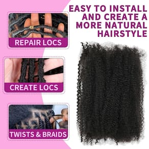 Marca: Geogroket Cor: Preto natural Material: Cabelo humano Comprimento: 30-45 cm Estilo: Afro Kinky Curly Peso: 50 g - Peso do cabelo: cabelo humano crespo afro crespo oferece 50 gramas/pacote, geralmente 3~4 pacotes podem ser feitos de cabeça inteira. - Vantagem do cabelo: cabelo humano encaracolado crespo 4C para dreadlocks, reparo de locs, adicionar torções ou tranças, pode combinar com a textura do seu próprio cabelo facilmente. - Textura do cabelo: cabelo humano crespo afro leve e durável, aparência natural macia e agradável à pele, combina perfeitamente com o seu próprio cabelo. - Material do cabelo: O cabelo humano afro kinkys é feito de cabelo humano virgem 100% brasileiro, toque macio, sem cheiro, pode ser descolorido e tingido. - Observações quentes: o cabelo humano afro kinkys é todo feito à mão, por isso é normal ter alguns cabelos quebrados. O comprimento correto do cabelo é medido após o alisamento.