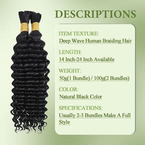- Uma ampla variedade de estilos de uso com volume de ondas profundas: sem trama de cabelo humano para trançar, pode ser utilizado para fazer tranças boêmias, tranças sem nós, tranças e assim por diante. Adequado para encontros, viagens, formatura e aniversário