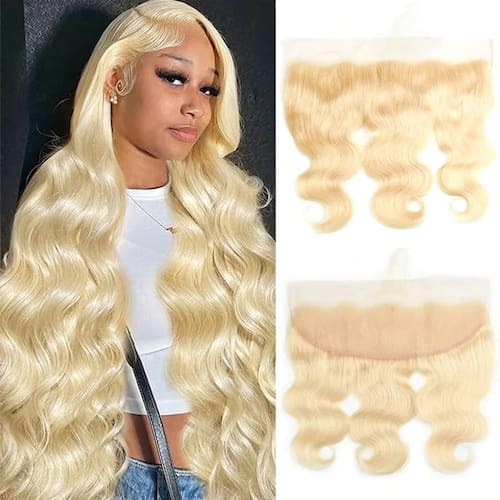- Shining Girl 613 Cabelo loiro Frontal NOTAS: Nosso cabelo humano frontal de renda loira ondulado pode ser tingido e descolorido, mas não sugerimos que você desligue o cabelo com muita frequência, isso reduzirá a vida útil do cabelo.